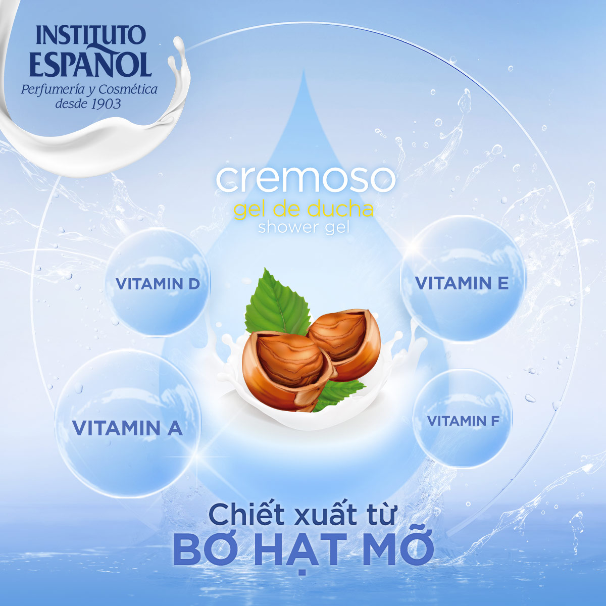 Gel tắm Bơ Hạt Mỡ hỗ trợ cấp ẩm sâu, mềm mịn da Instituto Espanol Cremoso Shower Gel 1250ml